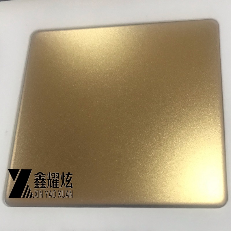 | 產品 Product: | 噴砂黃銅金不銹鋼彩色板 Bead Blasted Brass Gold Stainless Steel Panel, Manufacturer PVD Color Sandblasted 304 Stainless Steel Sheet Brass Gold SandBlasted Finish Stainless Steel |